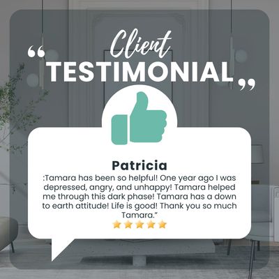 "Having been under the care of Tamara for the last couple of years it has occurred to me that her professionalism, kindness, loyalty to my specific needs has been a testament to itself. She has been upfront, honest, and completely assertive to wellbeing. I came to her because I was struggling with panic syndrome and depression. Through the last years Tamara has shown her dedication, drawing a clear narrative of how to balance stress and fear in my life. Even though I am not finished with her services I can attest that I will continue her indoctrination and guidance with full confidence that one day I will be able to live a full life with out the stressors and crippling fear I have succumbed many years ago. I truly believe I have gained valuable information from her expansive knowledge and understanding of human psychology. I believe I have gained the upmost confidence for my everyday life. I believe I have also a friend for life, a family member. ~M.C."
